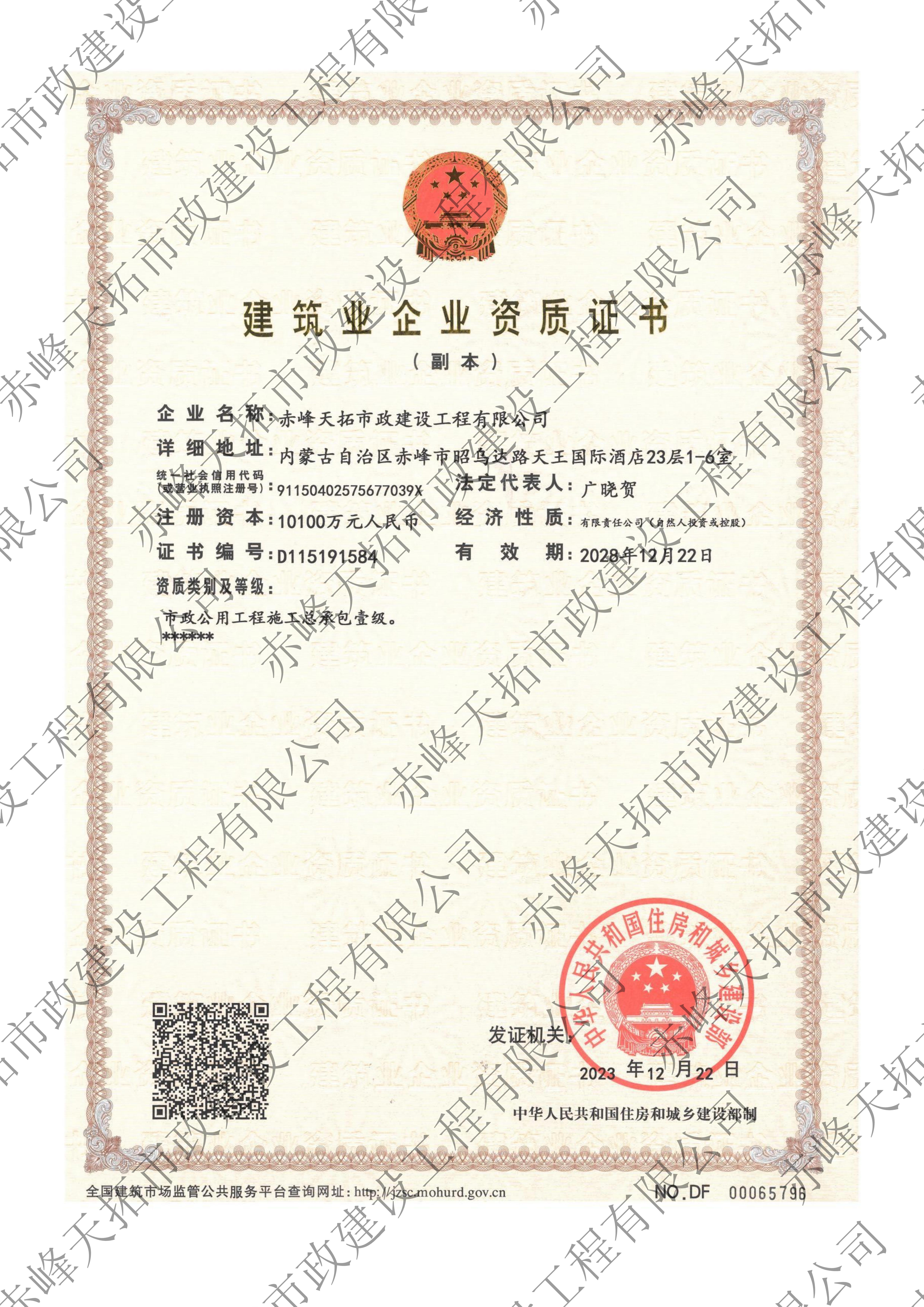 我公司成立于2011年06月04日,注冊資金10100萬元,經過多年的不懈努力,我公司已取得市政公用工程施工總承包壹級資質、公路工程施工總承包叁級資質、建筑工程施工總承包叁級資質及環保工程專業承包叁級,現主要從事市政工程、公路工程、園林綠化工程、建筑安裝工程、土石方工程、建筑勞務分包、鋼結構工程、環保工程、建筑工程、水利水電工程施工;體育場地設施工程;建筑機械維修;建筑材料生產銷售;瀝青混凝土生產;林木、苗木培育銷售;機械設備租賃、房屋租賃;建筑工程設計;農村土地整理服務;技術信息咨詢;土木建筑工程研究服務,交通運輸工程研究服務。